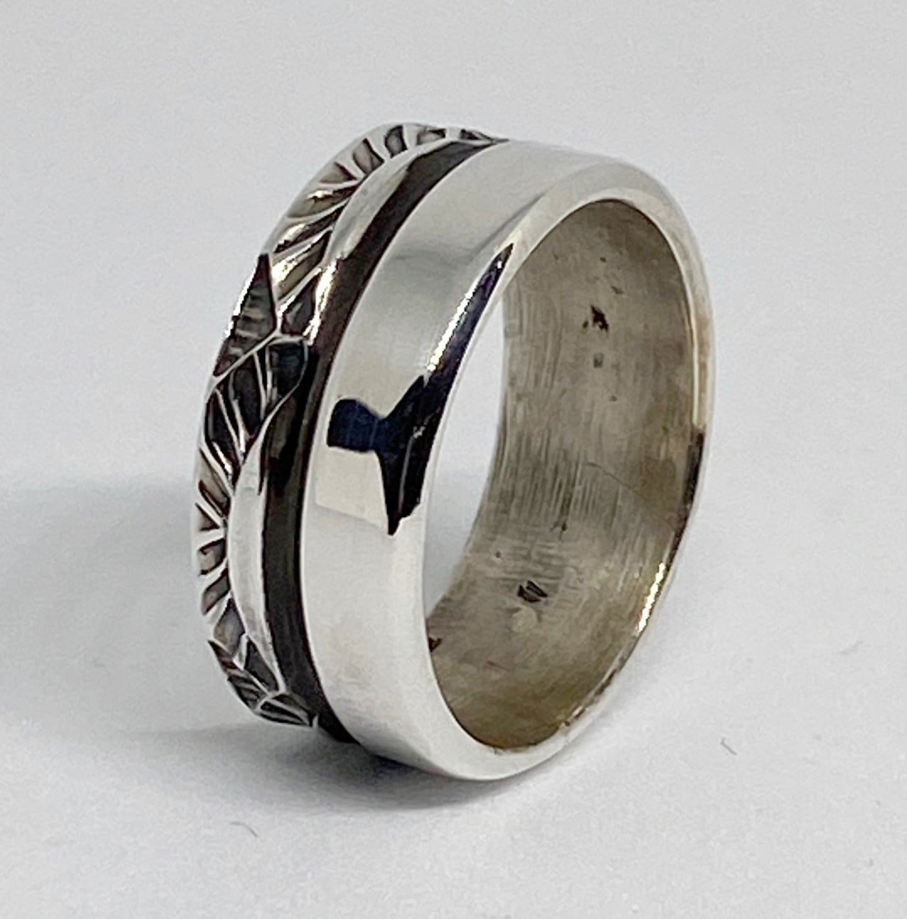 リング1周に細かなスタンプワークが施されています。