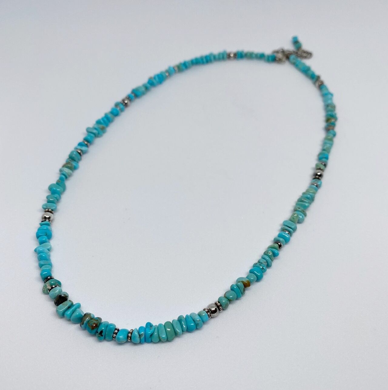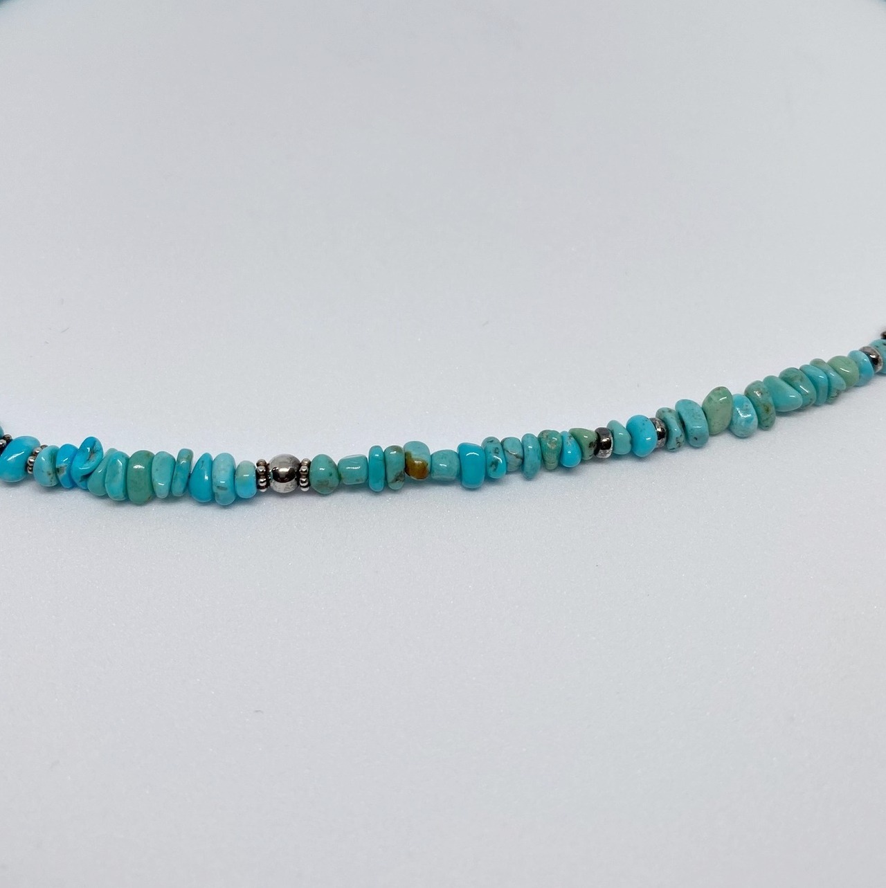 本作品はナバホ族のアーティストによって制作されたターコイズビーズネックレスです。