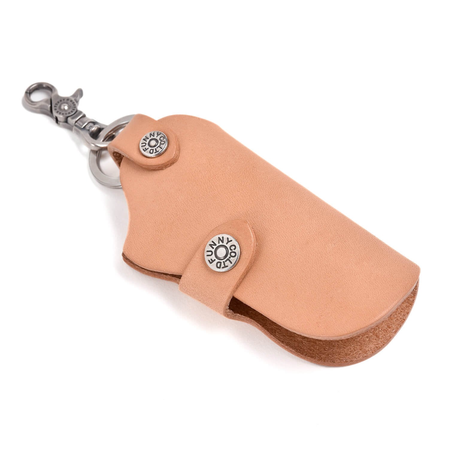 スマートキーが傷みにくいようホルスター型のレザーによってキーを保護し、重いキーをぶら下げてもレザーには直接負荷が掛からない構造になっています。